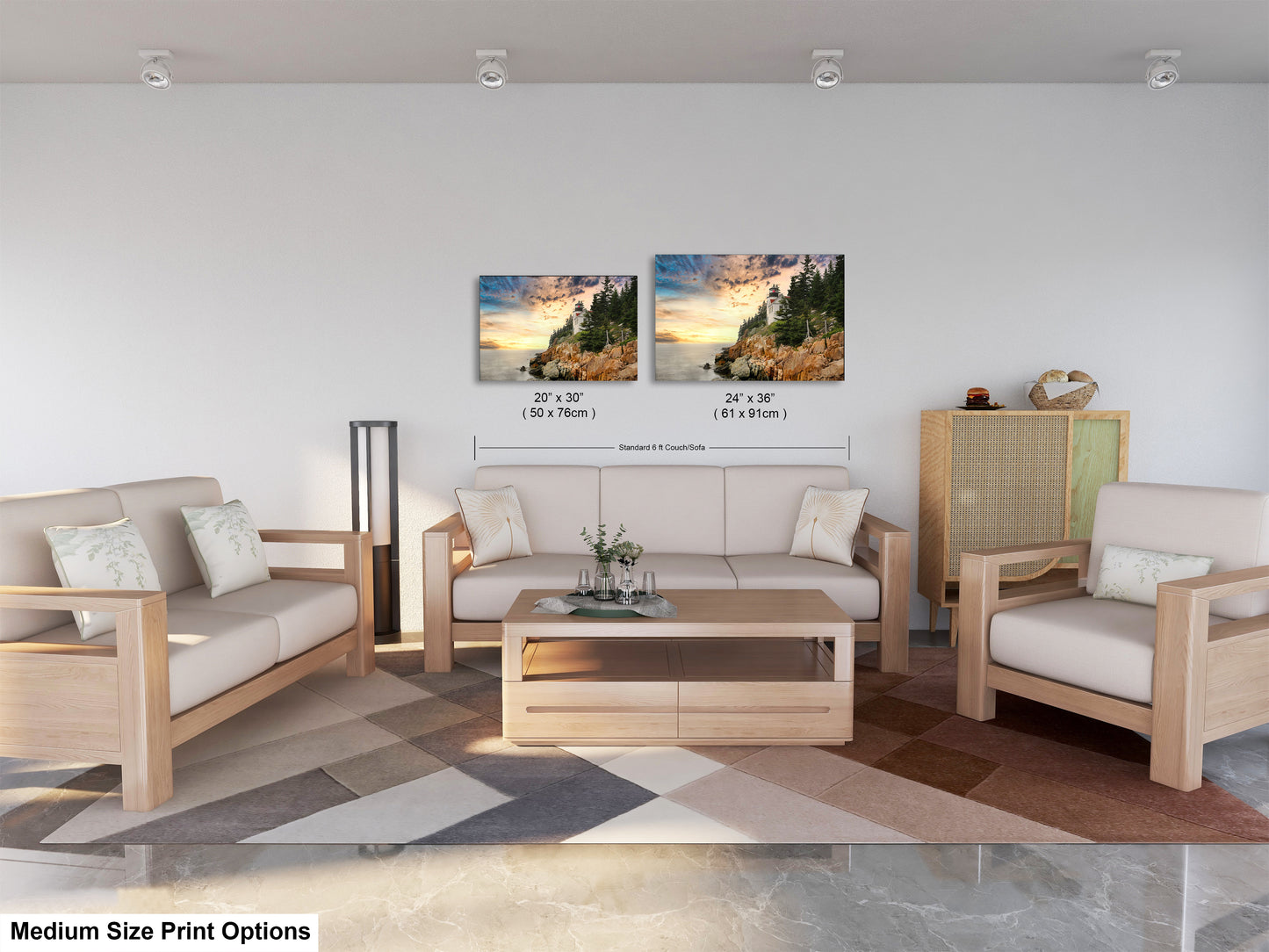 Bass Harbor Lighthouse, Acadia Maine, Dramatic Landscape Print, Canvas Wall Art, Made in USA, Decor for Home,Living Room, Bedroom, Office