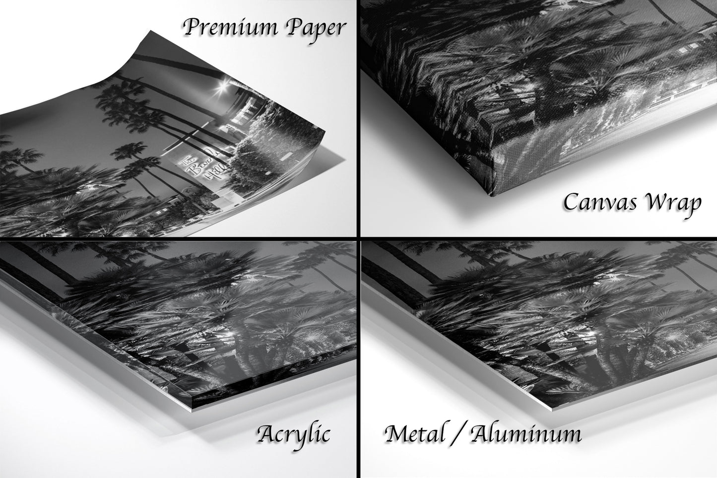 Beverley Hill Hotel Los Angeles California Black and White Canvas Print Metal Art Cityscape Landmark Bedroom Livingroom wall art decor home