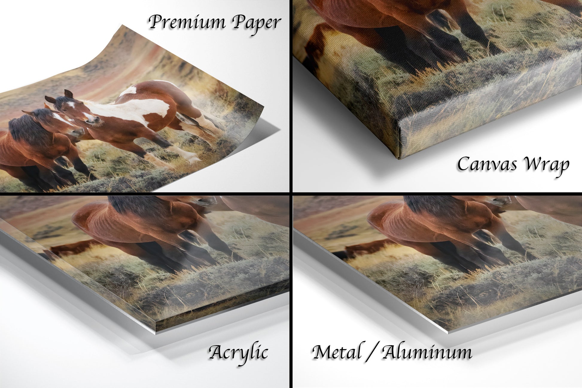 Wild Horses, Western Wall Art, Office, Living Room, Bedroom, Bar, Entryway, Canvas, Metal, Glossy Photo Print