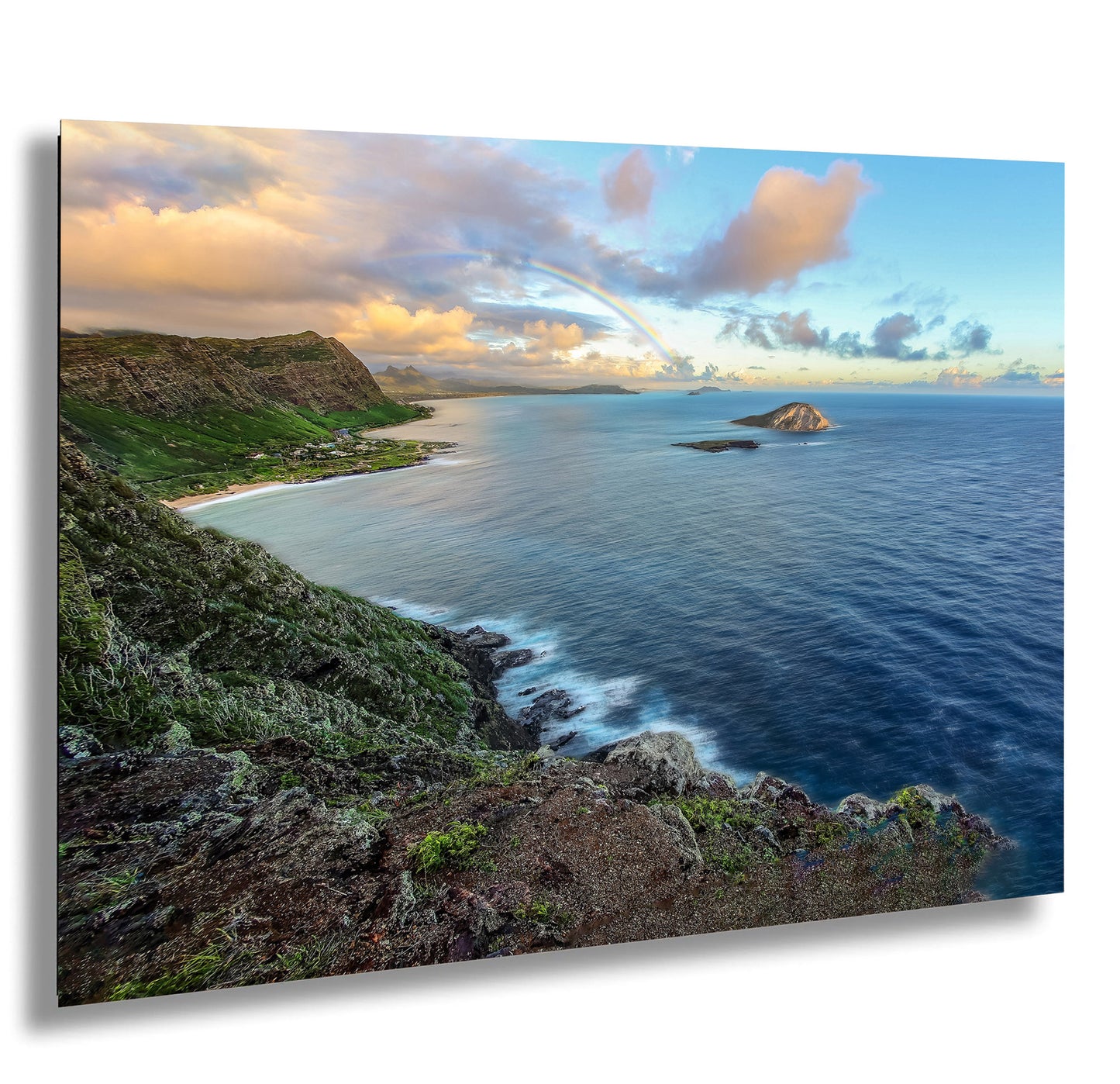 Hawaii, The Beautiful Rainbow and Lonely Rabbit Island Flanked by the mountainside, Waimanalo shores and Tide Pools