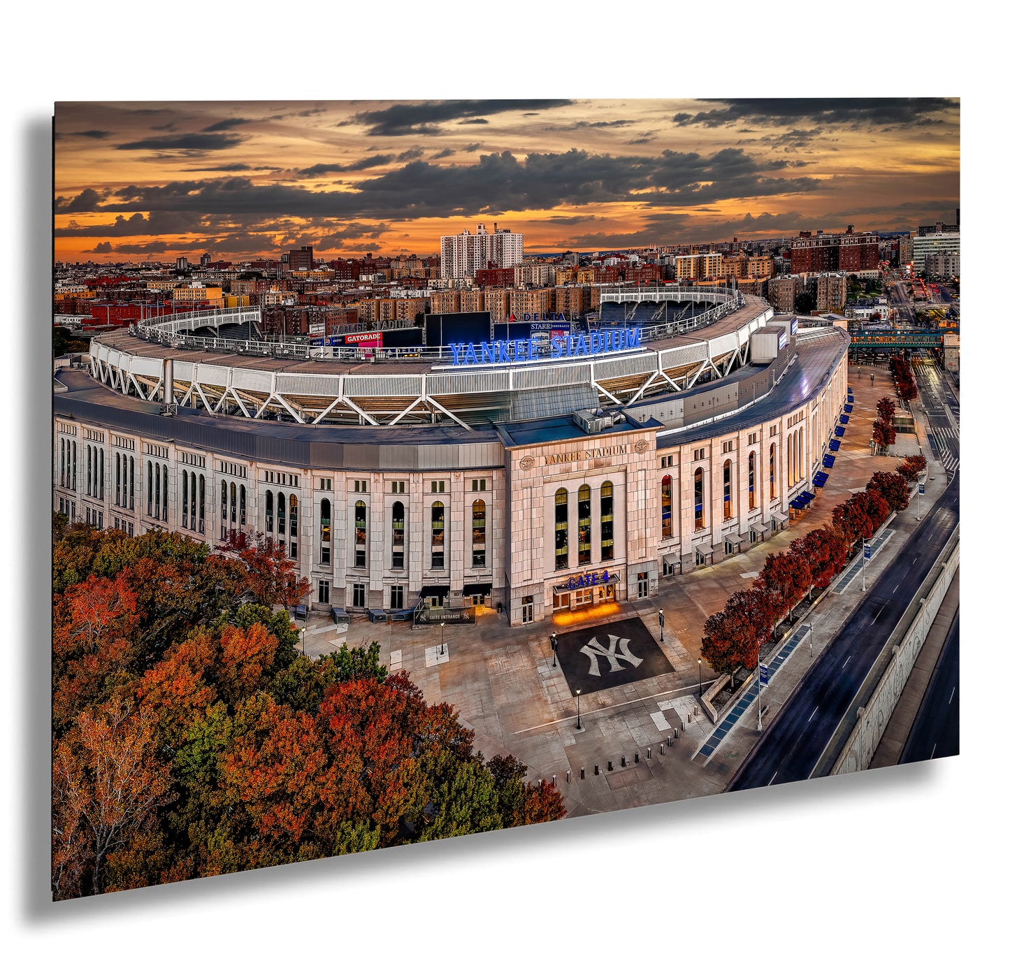 In the heart of New York City, as the sun began its descent, I set out with a daring dream: to photograph the venerable Yankee Stadium amidst the fiery hues of autumn. My quest was to capture this bastion of baseball legends from an eagle's perspective, using a drone as my steed.