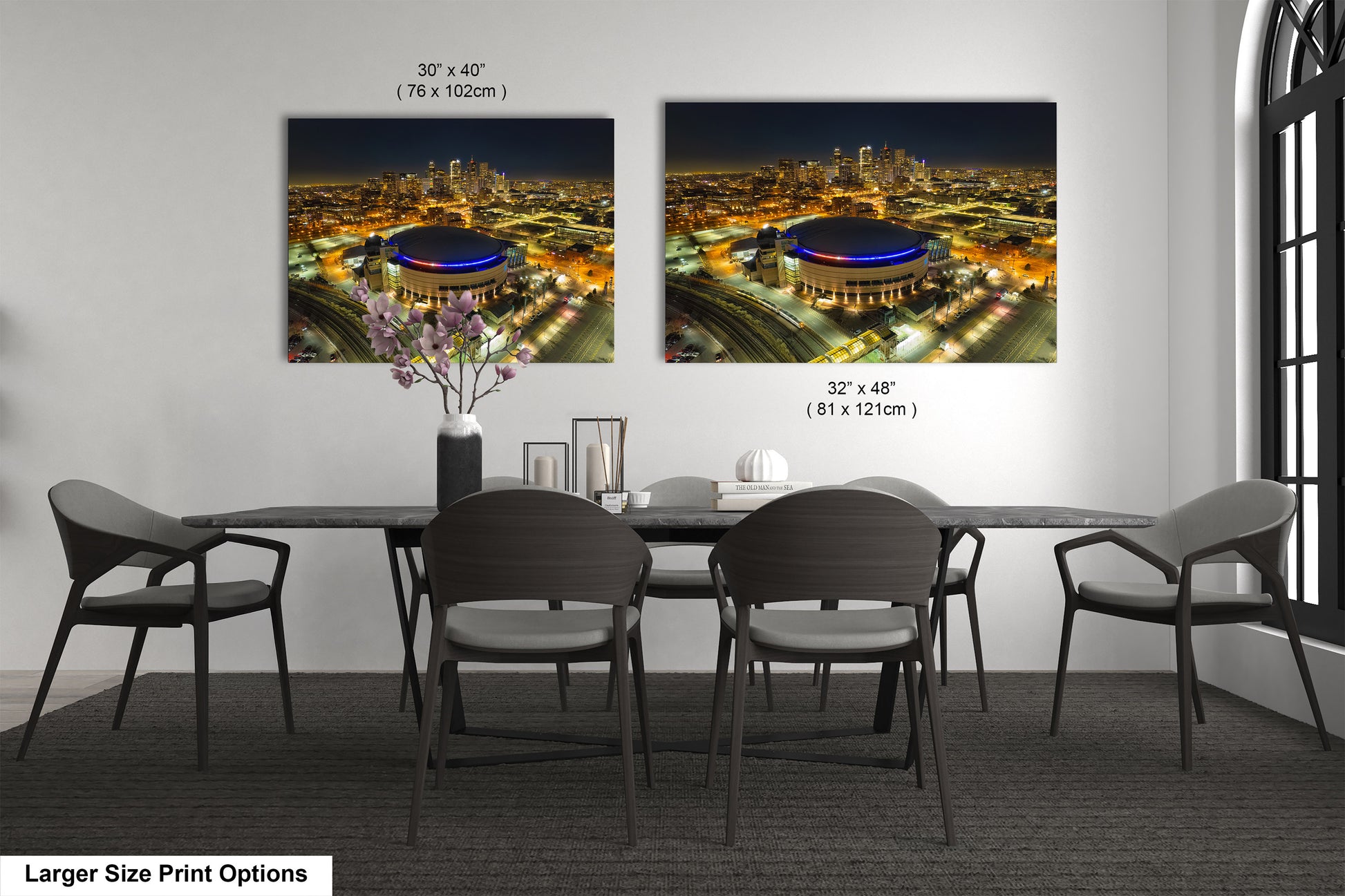 Capture the vibrant spirit of Denver with this stunning Denver skyline photo featuring iconic landmarks like Ball Arena, home to the Colorado Avalanche and Denver Nuggets. Perfect for fans and city lovers alike, this authentic image brings the energy of downtown Colorado right into your living space.