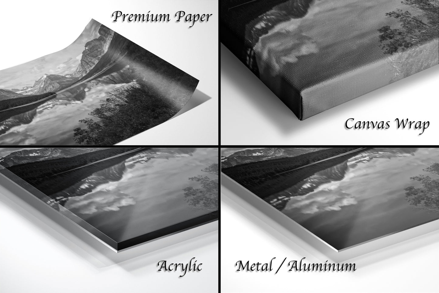 St.Mary's Lake Glacier National Park, Montana Mountain Landscape, Canvas Wall Art Prints, Black and White Decor